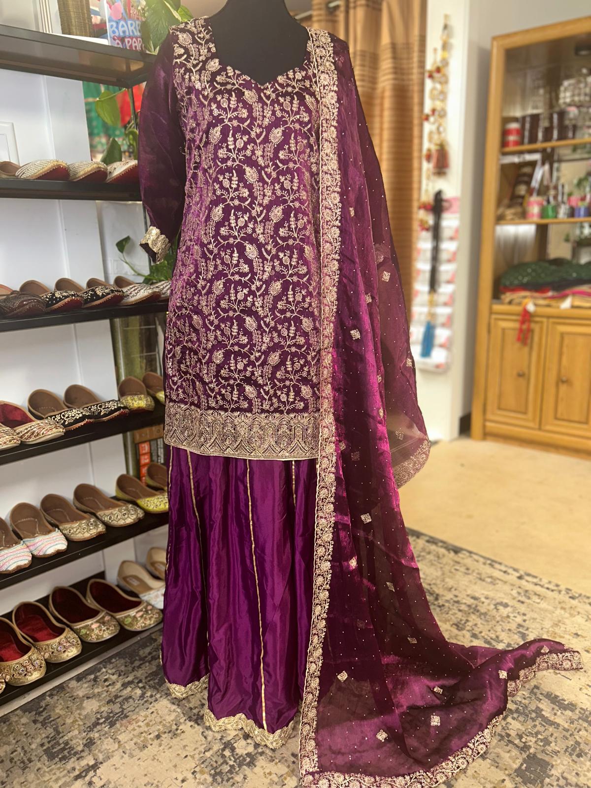 Fabric- Shimmer Size - Medium Color Purple Skirt Bottom Machine work embroidery Ready to Wear (Alteration included