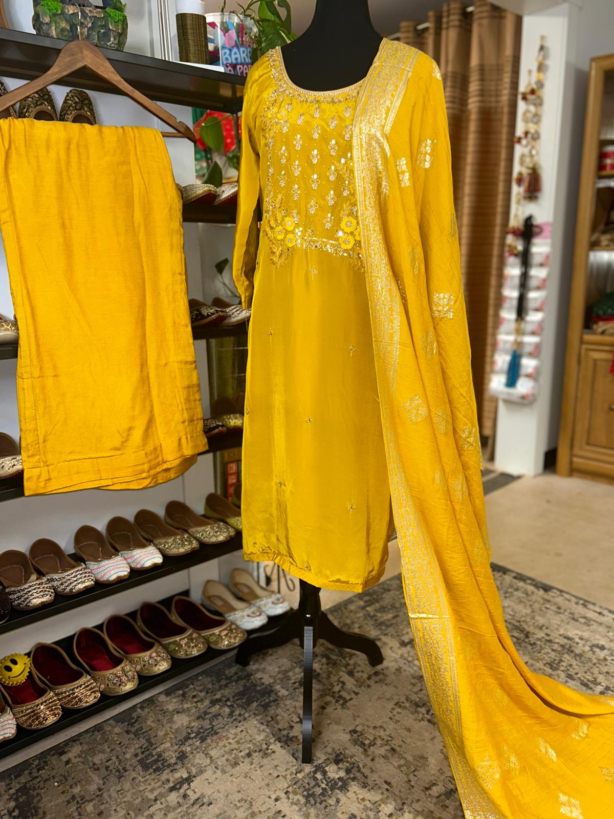 Fabric- Shimmer Bottom Muslin cotton Size - Medium Color Yellow Bottom Plazzo Ready to Wear (Alteration included